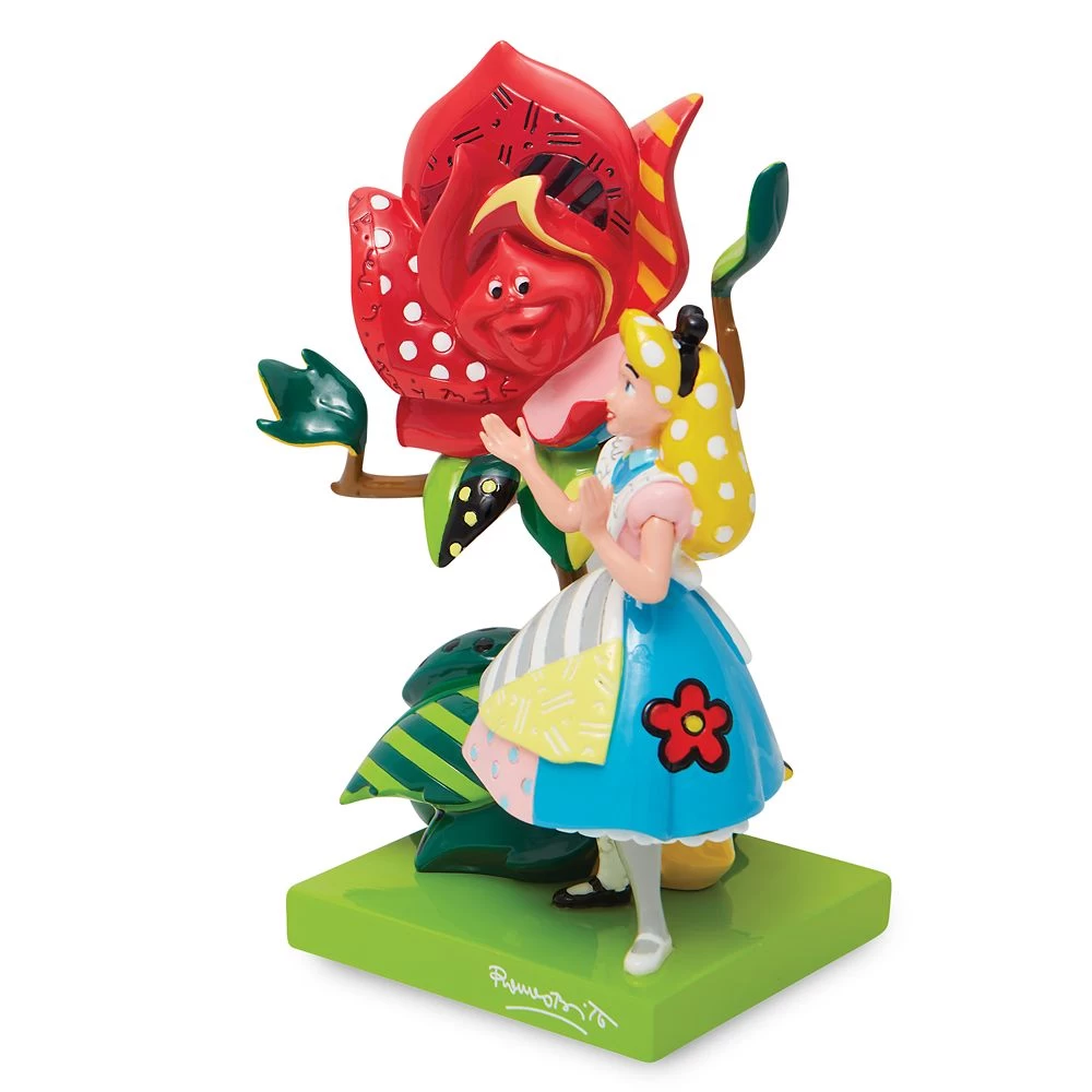 With bold color and compelling pattern, contemporary pop artist Romero Britto captures the fun and whimsy of Disney animation. In a redesigned scene from Alice in Wonderland, Alice greets a talking Rose with great curiosity.