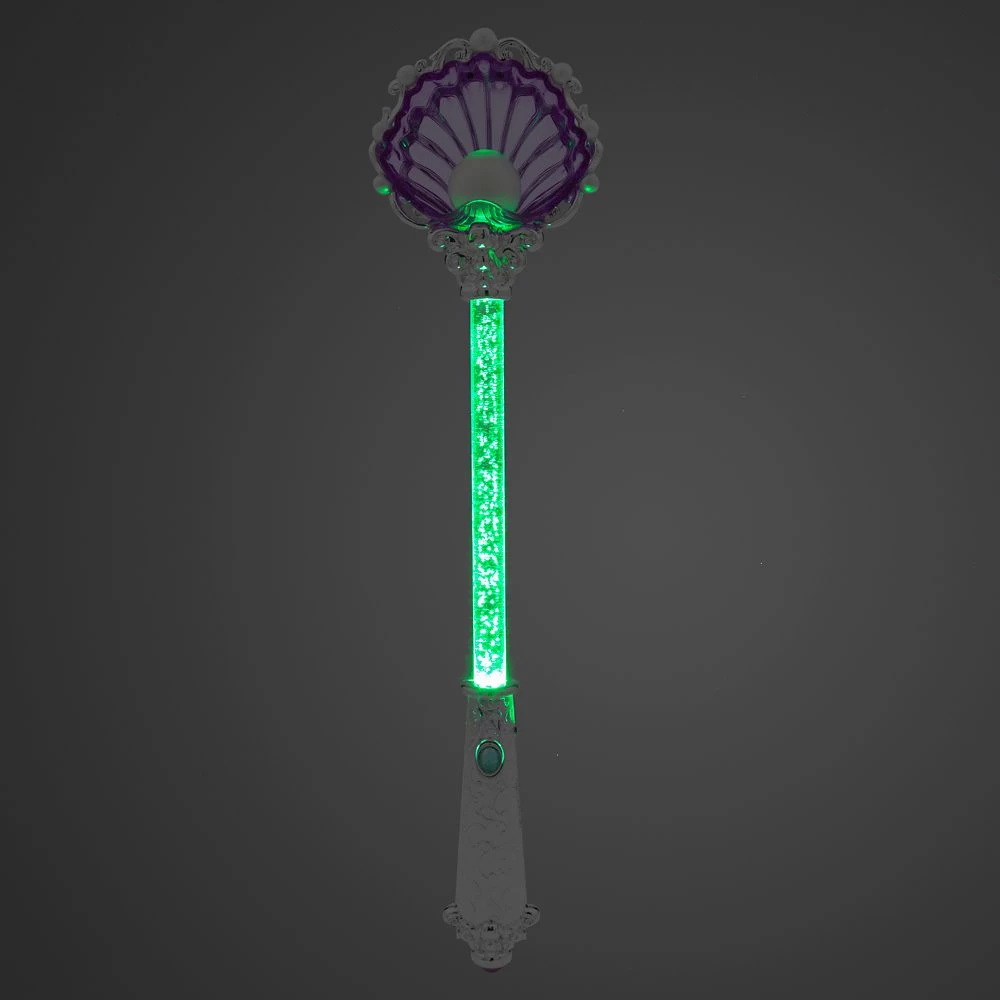 A wave of Ariel’s Wand commands an undersea kingdom of multicolored enchantment. Topped by a translucent shell, the bubble-filled stem changes color with a press of a button, making it a dazzling Little Mermaid costume accessory.