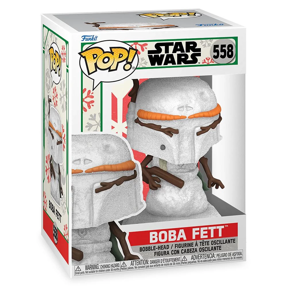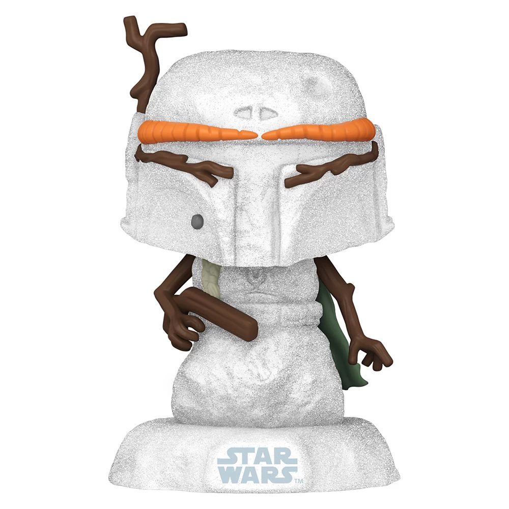 Spark intergalactic holiday fun with Boba Fett as a bobble-head snowman. Pop! Boba Fett shimmers in white snowflakes, with carrots and twigs as finishing touches for the limbs, helmet, and armor. Celebrate the season with our series of festive Star Wars characters and expand your collection.