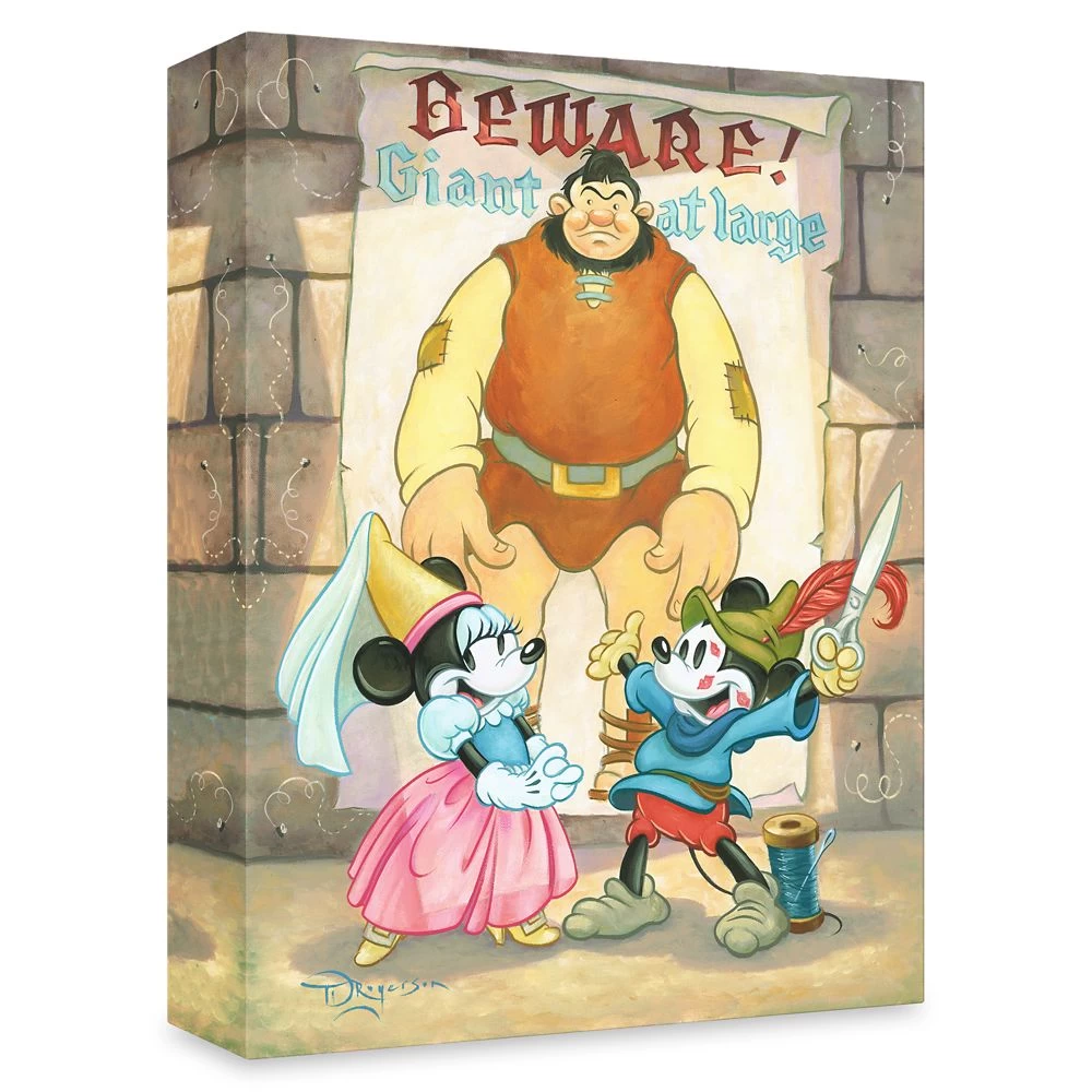Mickey is pictured in the title role of the Brave Little Tailor in this work by Tim Rogerson. Inspired by Disney’s 1938 short in which Mickey is tasked with capturing the giant and winning the hand of Princess Minnie, ”Giant at Large” is a limited edition giclée that comes gallery wrapped on canvas and ready to hang.