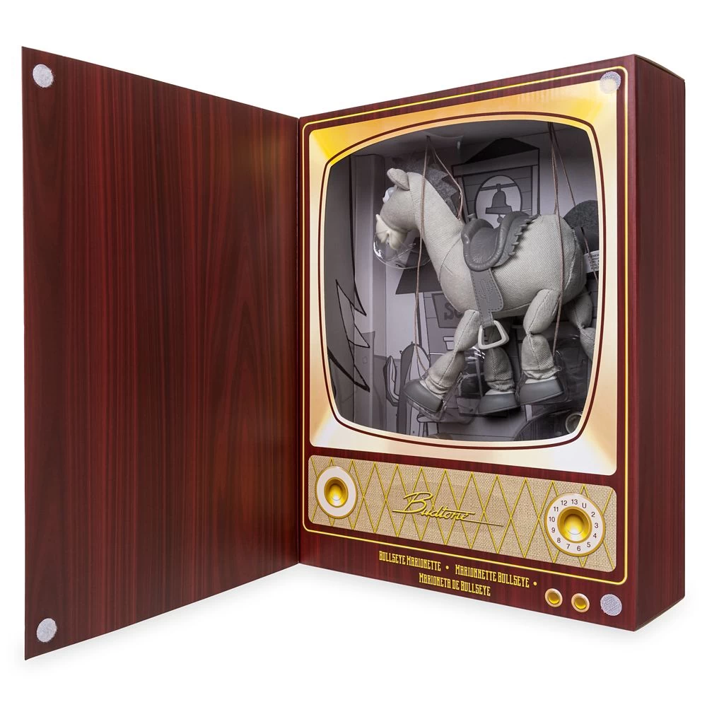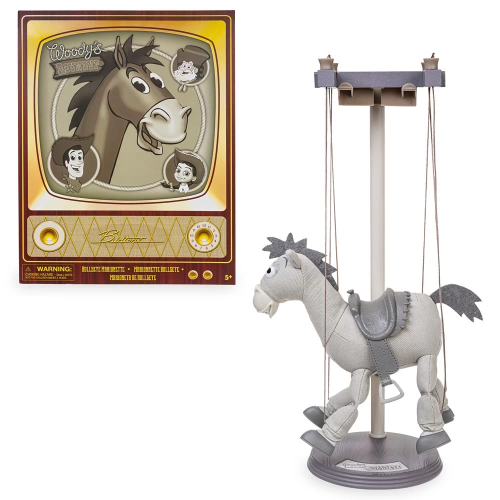 Take the reins on countless adventures with this Bullseye marionette. Woody’s trusty horse comes to life with the pull of strings in this classic toy that feels as exciting and new as the next high-riding escapade. Inspired by Disney and Pixar’s Toy Story, this Bullseye puppet comes in a package made to look like a classic Budtone TV seen in the Toy Story films.