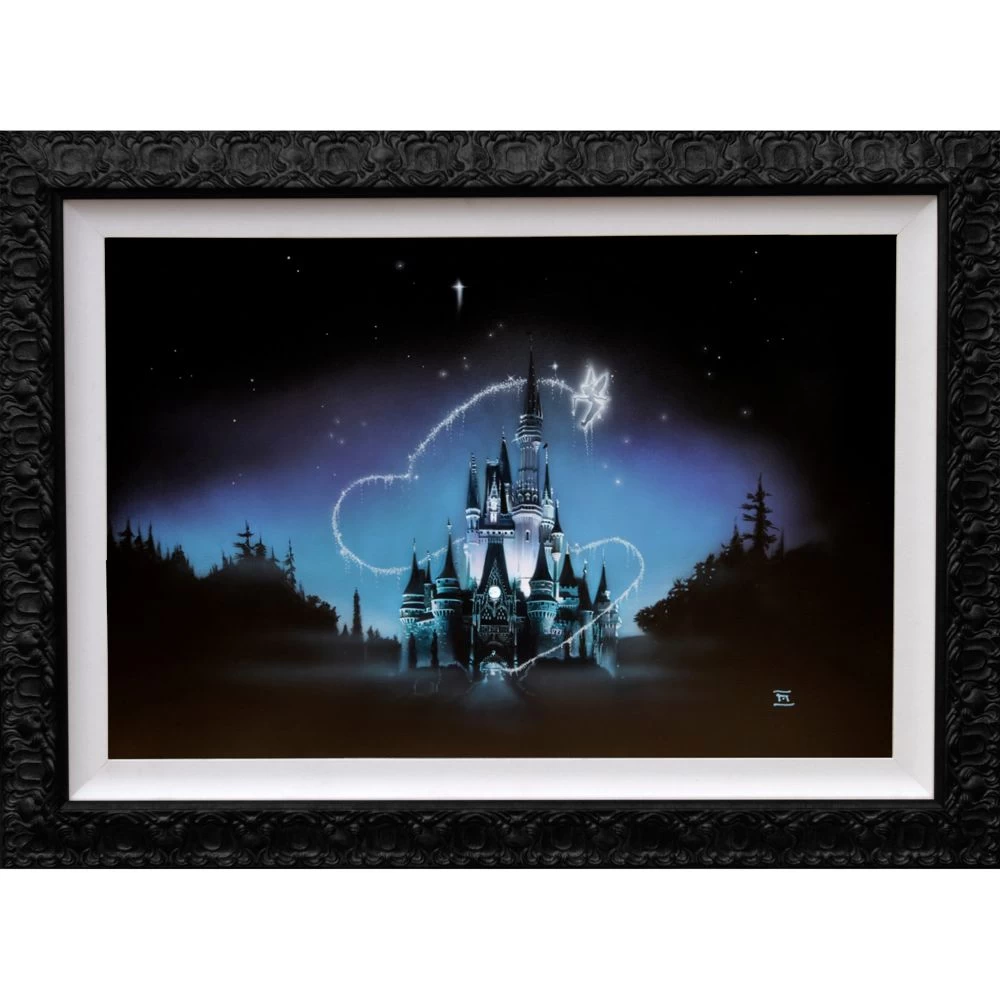 Tinker Bell sprinkles her pixie dust, illuminating Cinderella Castle with a haunting glow. Created by renowned artist Noah, and available in a range of formats, ”40 Magical Years” celebrates the opening of the Magic Kingdom in 1971.