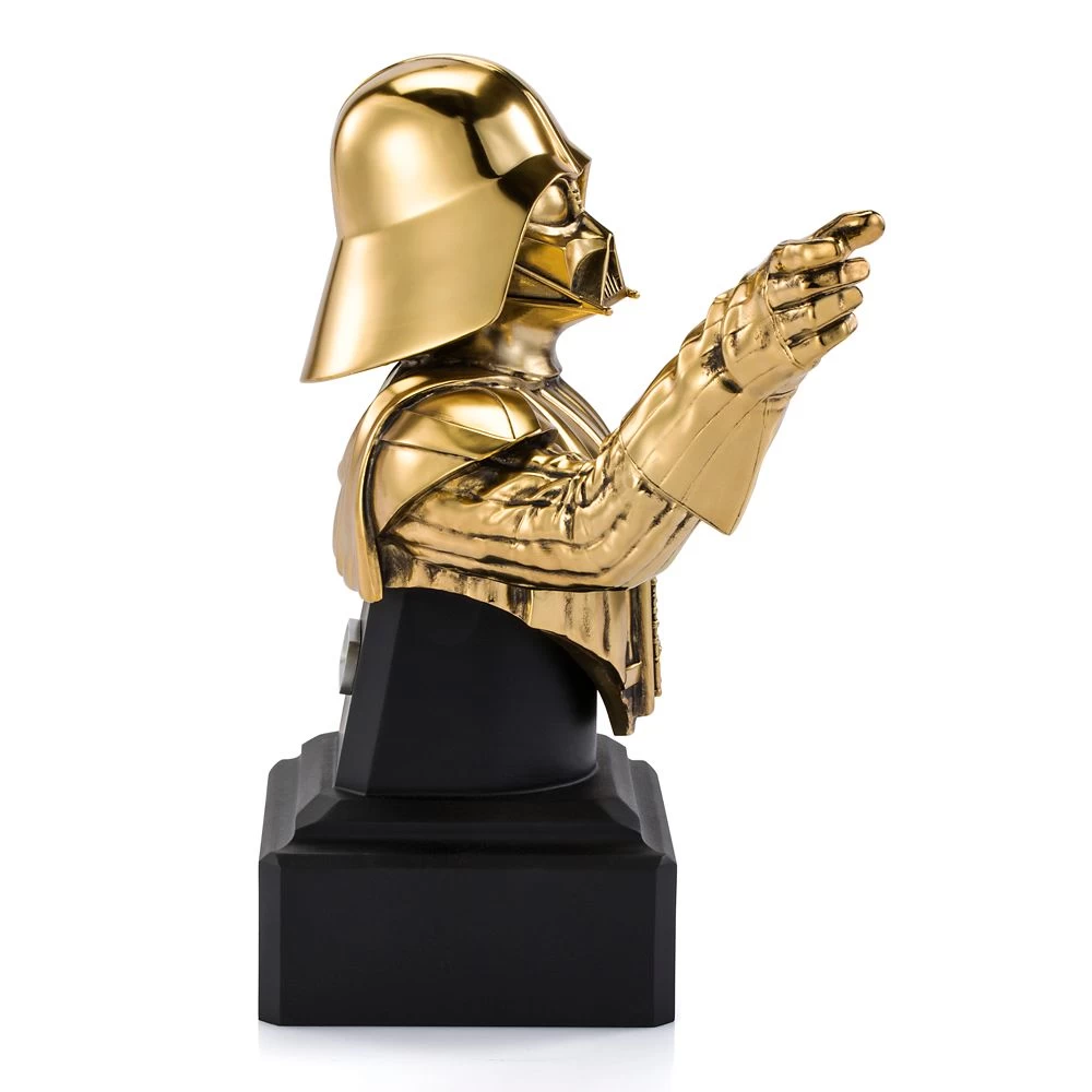 The Dark Lord shines in a brilliant finish pewter embellished with 24K gilding. Darth Vader commands the Force to exert his will, his fingers closing inexorably into a crushing grip with this limited edition gilt figurine by Royal Selangor. The Star Wars legend is portrayed in the classical tradition, on a pedestal of bonded porcelain.