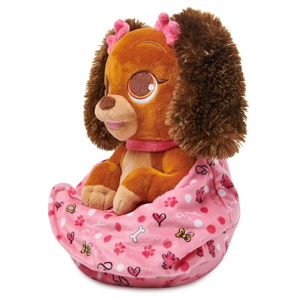 Minnie’s pampered pooch pal, Fifi, is all wrapped-up in her soft blanket as this super cuddly Disney Babies plush. A colorful print featuring hearts, paws, and butterflies covers the pouch blanket which has a self-stick fabric clasp.