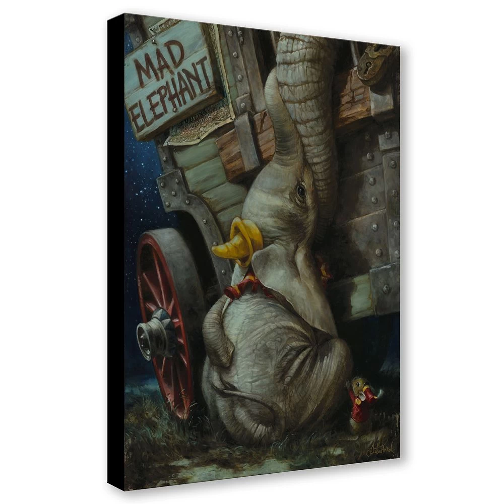 Celebrate the art and legacy of Disney Animation with this limited edition hand-signed and numbered canvas print revisiting the touching reunion of Dumbo and his caged mother in a classic painterly style. ”Baby of Mine” by Heather Edwards is gallery wrapped and hand-embellished with acrylic painted accents.