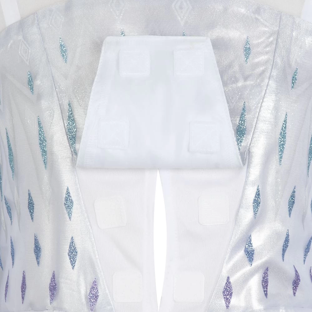 All hail the snow queen in this adaptive Elsa costume, which features openings at the back and a discreet flap in the front center for easy tube access. Let imagination go in our shimmering gown with sheer sleeves and icy, glittering details.
