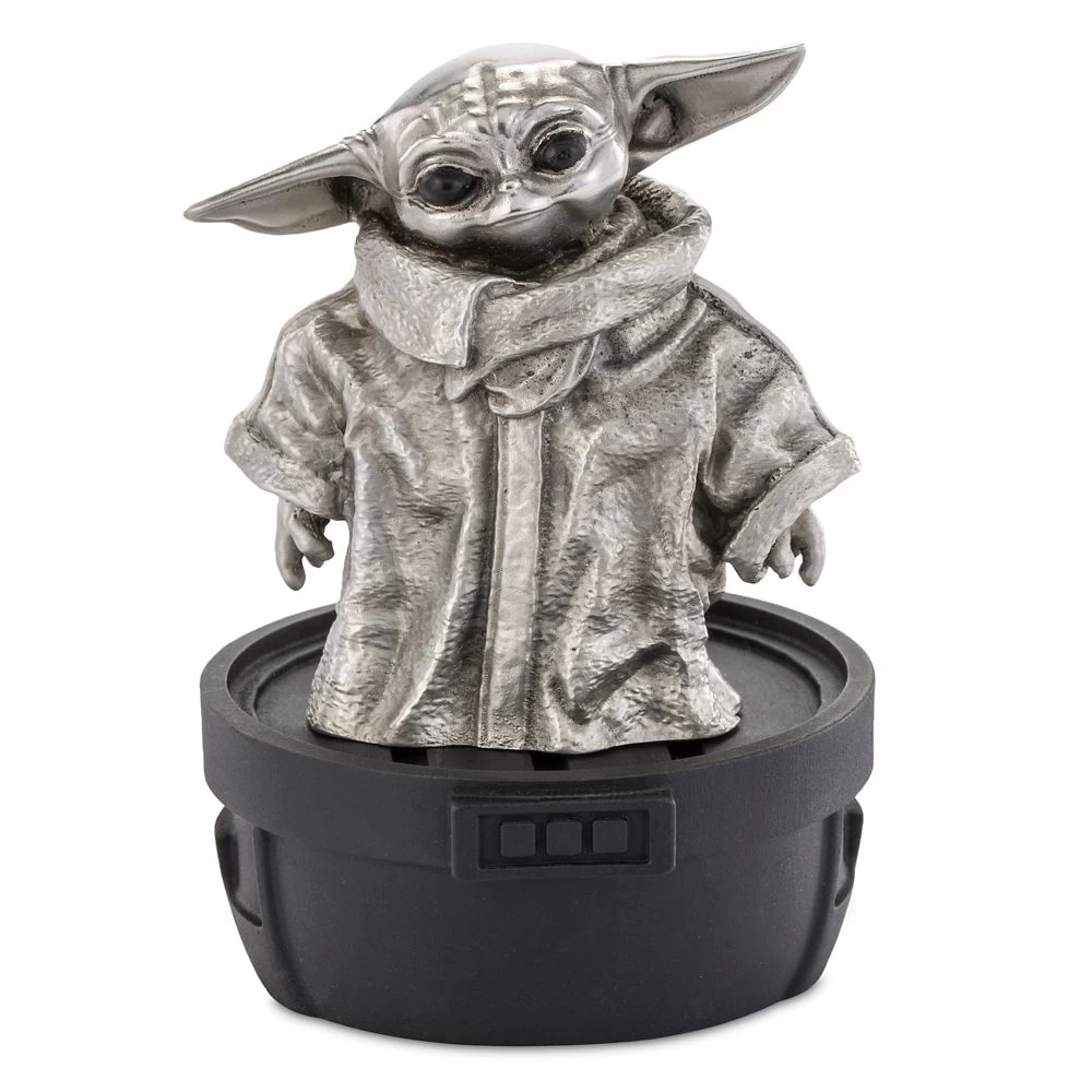 Sculpted in pewter to impressive detail, the enigmatic Grogu stares with large glossy eyes, displaying all the innocent charm of his screen persona. Inspired by Star Wars: The Mandalorian on Disney+, the mischievous Child may choose to stand atop his composite resin crib, or leave it altogether.