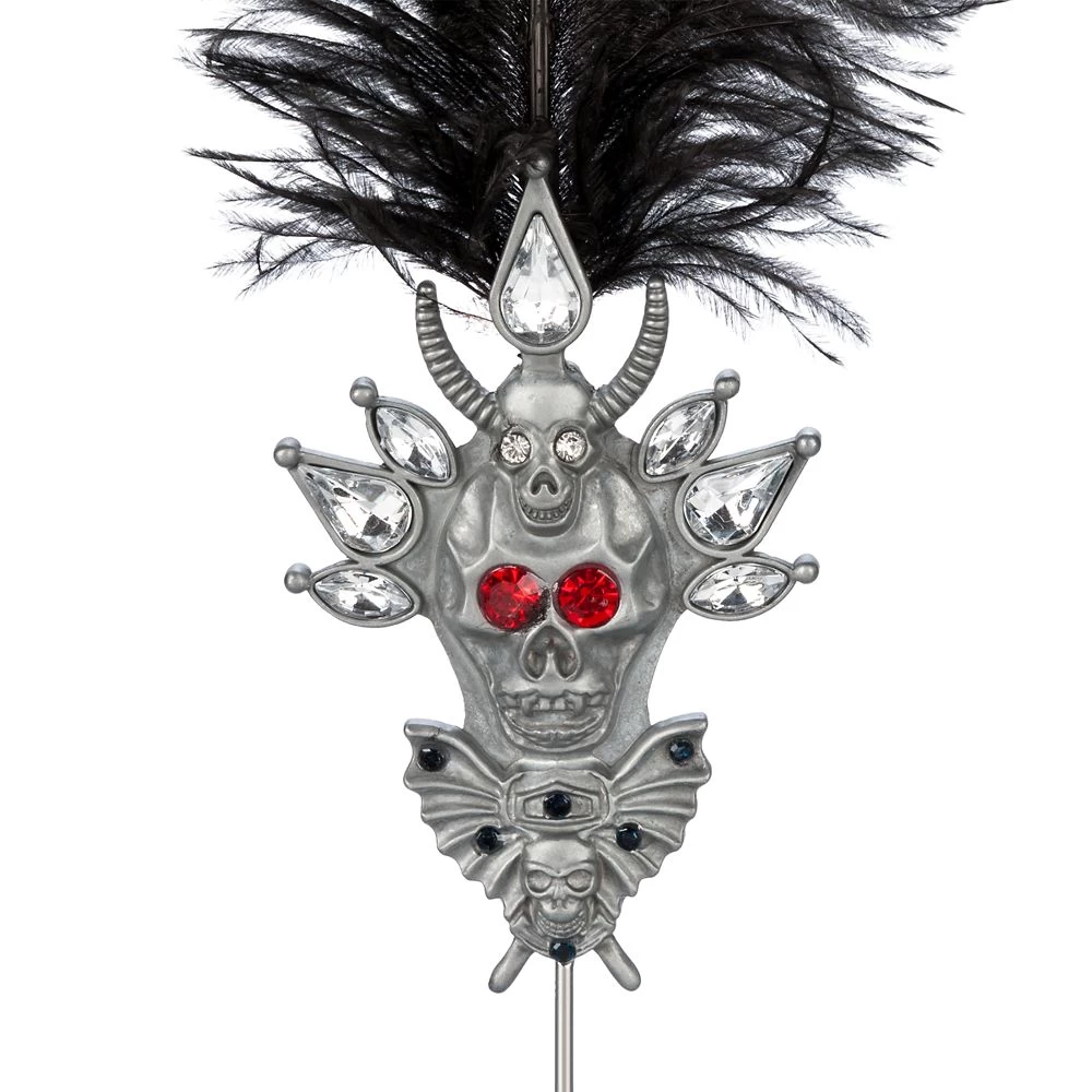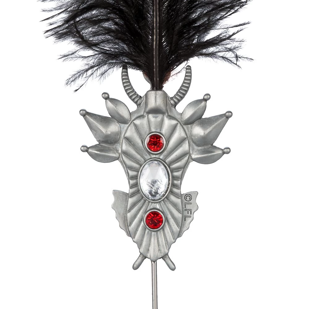 - Die-cast pin with feather and rhinestone accents