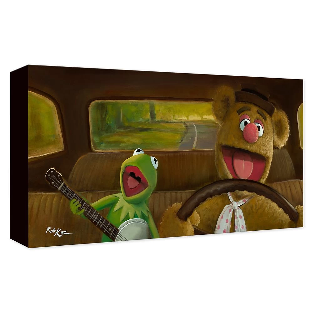 Relive the classic song from the original 1979 The Muppet Movie on this fun canvas print featuring Kermit and Fozzie Bear. Titled ”Movin’ Right Along,” this limited edition piece was created by artist Rob Kaz.