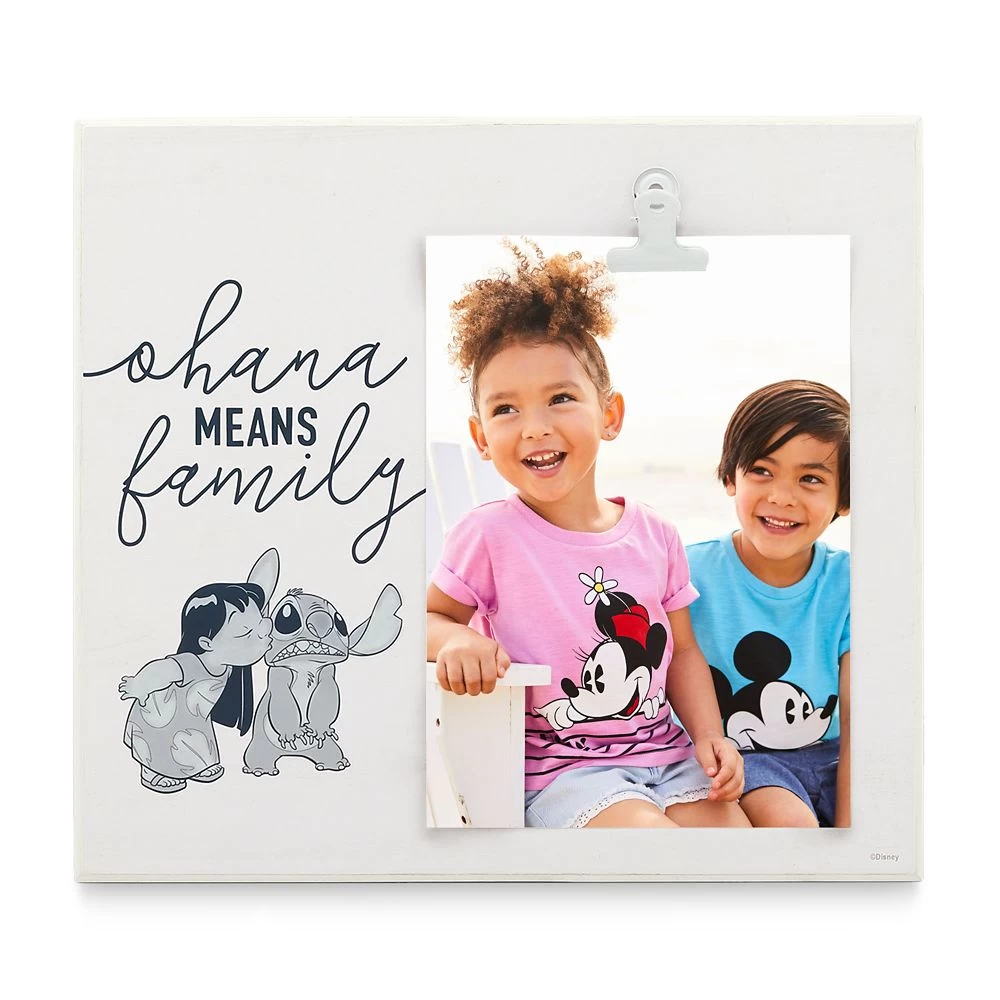 Where Lilo comes from, ”Ohana means family” but, judging from Stitch’s wincing expression, that’s no excuse for an affectionate peck. This amusing frame, with its clipboard design, holds a 5” x 7” photograph that could be of the family, or maybe not.