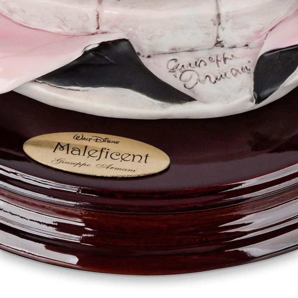 Designed in Italy by Giuseppe Armani and presented by Arribas Brothers, this delicate, beautifully detailed figure on wood base captures the sinister majesty and reptilian elegance of Maleficent, mistress of all evil.