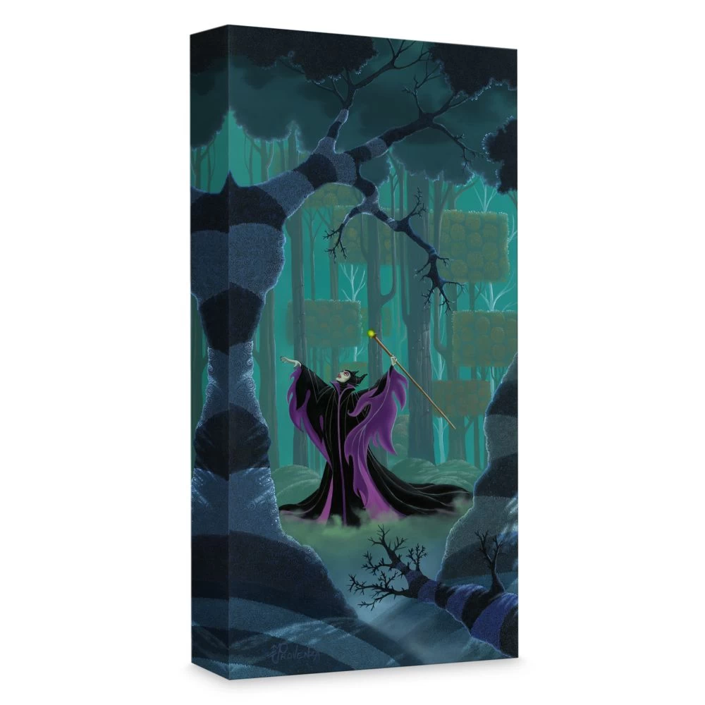 The evil fairy conjures up a villainous spell in this dramatic giclée on canvas by Michael Provenza. Inspired by Walt Disney’s 1959 classic Sleeping Beauty, the limited edition ”Maleficent Summons the Power” comes gallery wrapped.