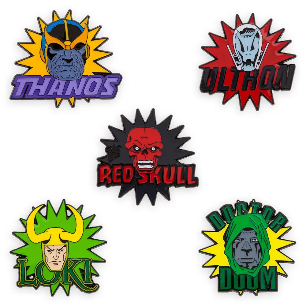 The baddest of the bad in the Marvel Universe are gathered together in our Mystery Pin Set recognizing the malevolent Marvel Villains. Each blind pack contains two randomly selected pins from a possibility of 10 different designs to arrest for your collection–or they will threaten our world with annihilation!