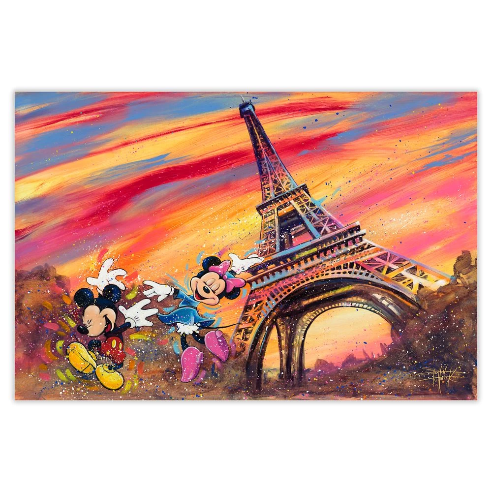 Mickey and Minnie exhibit an exuberant joie de vivre as they’re pictured ”Dancing Across Paris” in this limited edition work by Stephen Fishwick. Behind the couple the Eiffel Tower is set against a multicolor sky, with the scene presented on gallery wrapped canvas and hand-signed by the artist.
