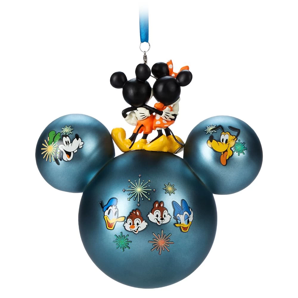 The magic will hang around awhile with this merry mouse icon ball ornament topped by sculpted Mickey and Minnie figures. Featuring a glittering 2023 logo and fireworks, it’s a dazzling reminder of your Walt Disney World vacation dreams.