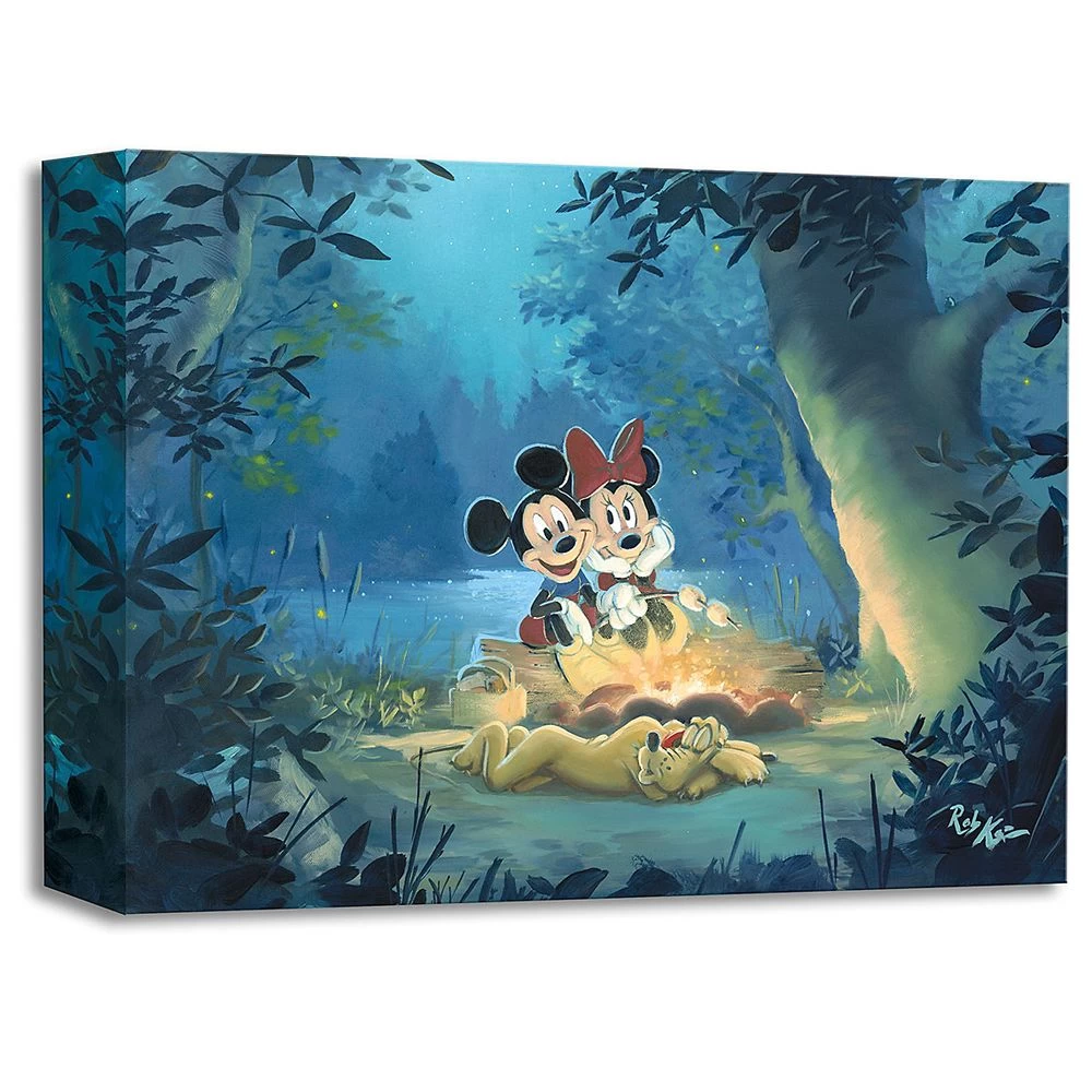 Bring the great outdoors inside! Mickey and Minnie canoodle by the campfire while Pluto snoozes nearby in this gallery-wrapped giclée by Rob Kaz.