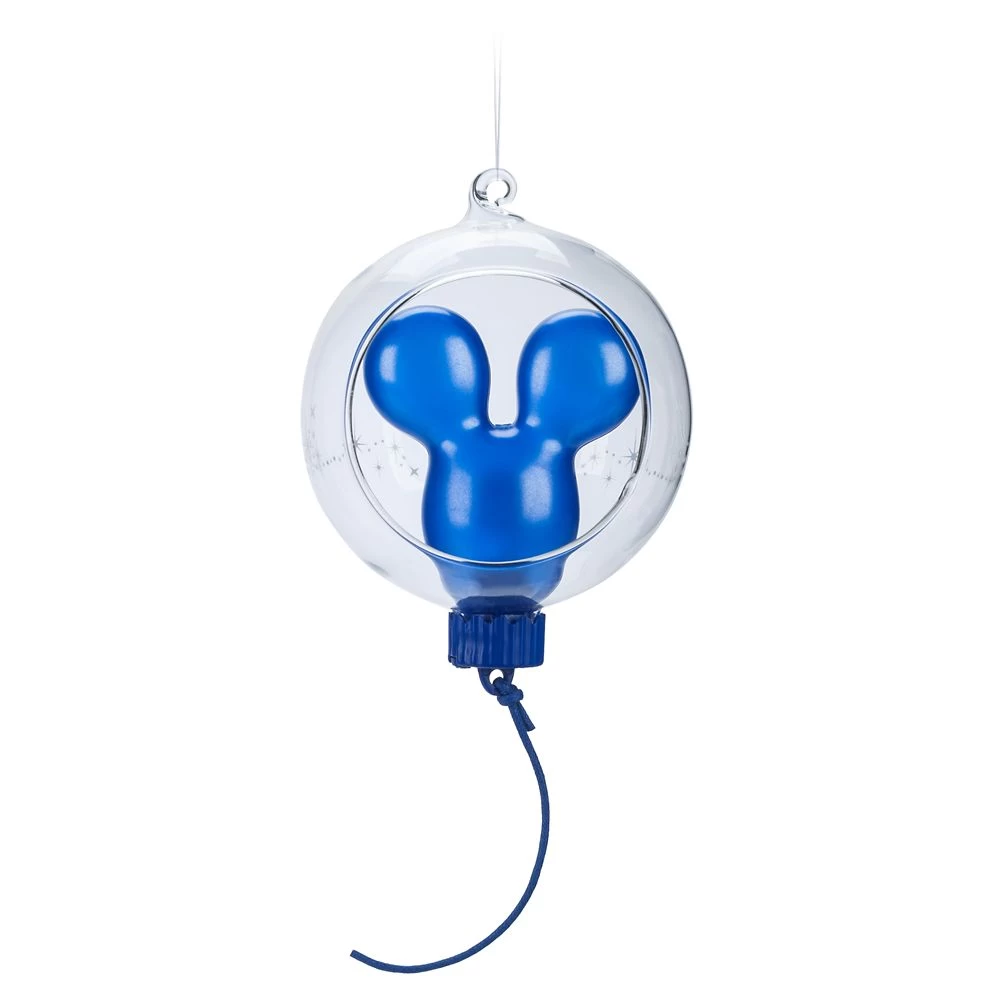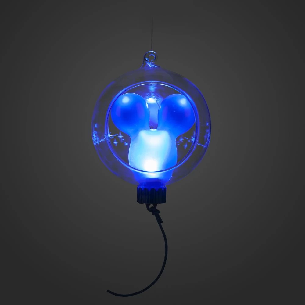 Travel back to Main Street, U.S.A. for a signature Mickey Mouse balloon ornament that lights-up inside a clear glass globe, sure to be a nostalgic highlight of your holiday display.