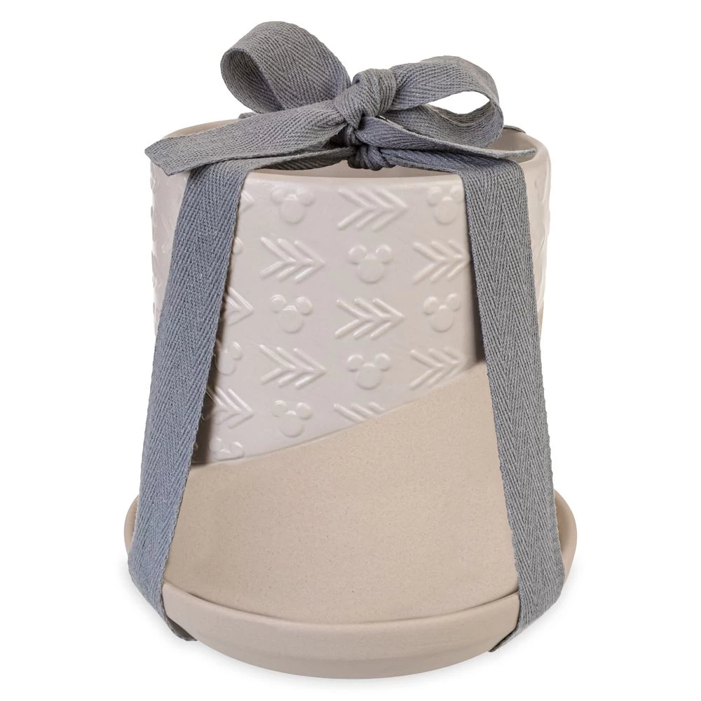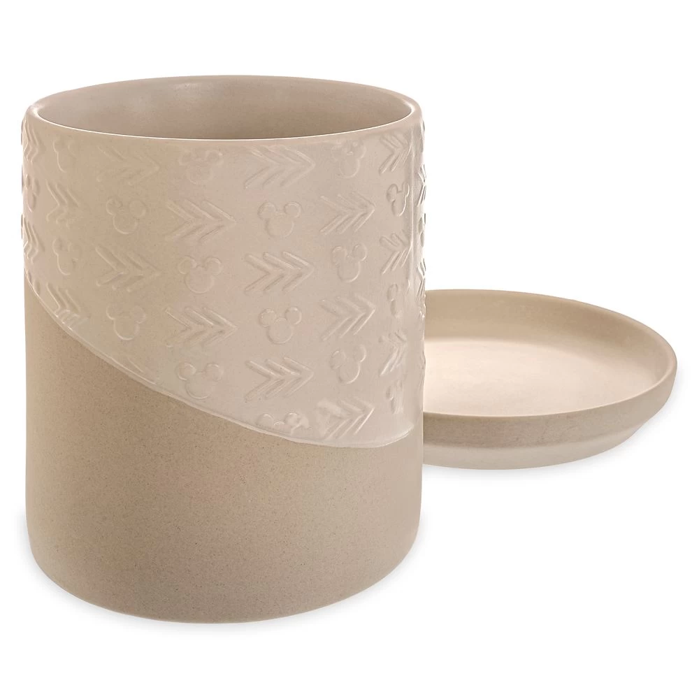 - Pot includes partially glazed section with raised pattern featuring Mickey icons