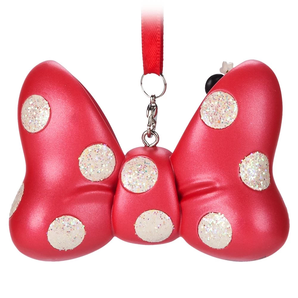 Sweet! Minnie’s signature polka dot bow sparkles with silvery glitter as her Sketchbook Ornament hangs from the family tree. Minnie herself pops out to take a peek.