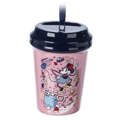 Wake up the holidays with this souvenir ceramic ornament in the form of a miniature Starbucks® carry-out cup with Siren logo, order checklist, and colorful cartoon design of Minnie Mouse at EPCOT.