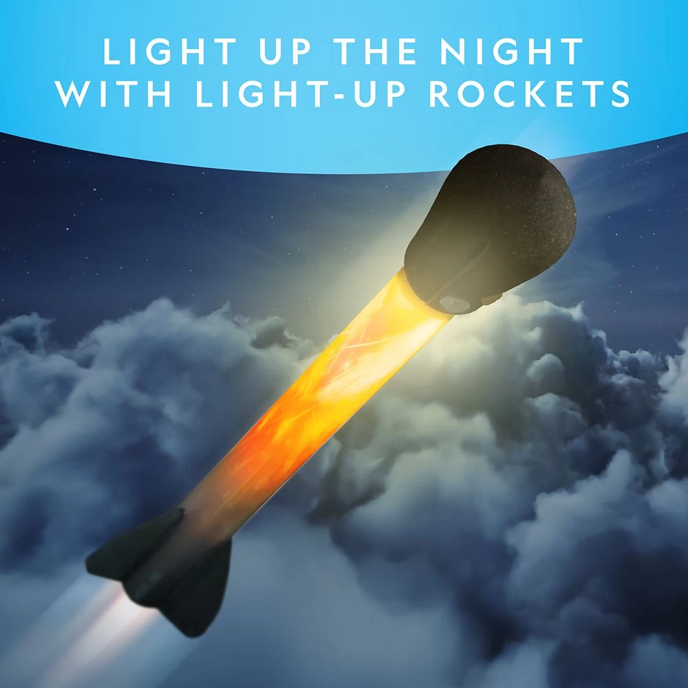 - Includes three LED light-up rockets, launch base, foot pump, learning guide, and instructions