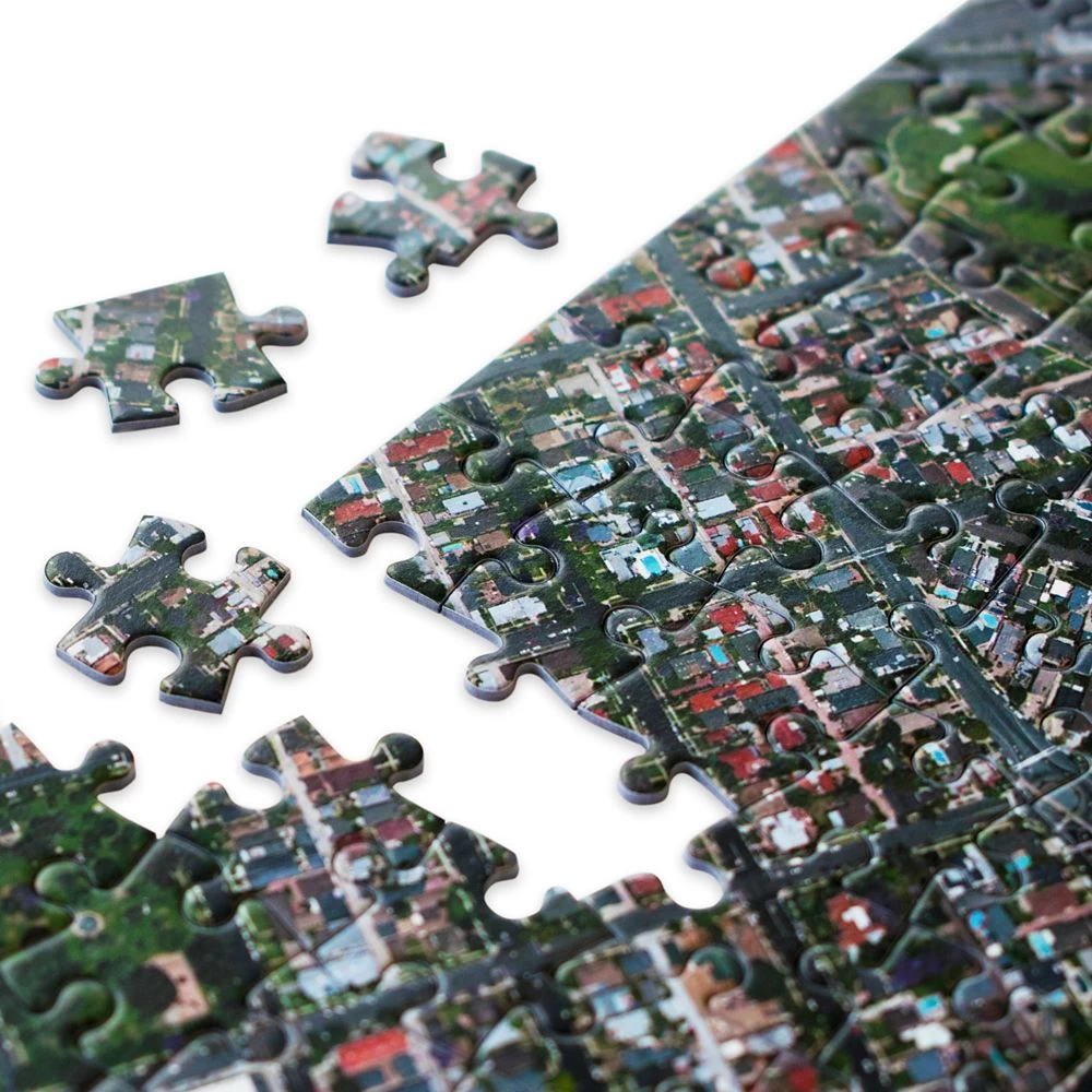 Explore your neighborhood from the comfort of your home with this personalized National Geographic My Town Puzzle. Each jigsaw is custom made. Simply provide your address and zip code and, using US Geological Survey (USGS) mapping that’s digitally stitched together seamlessly, we create a detailed 400-piece map that covers an area of 1 mile by 1 1/2” miles.