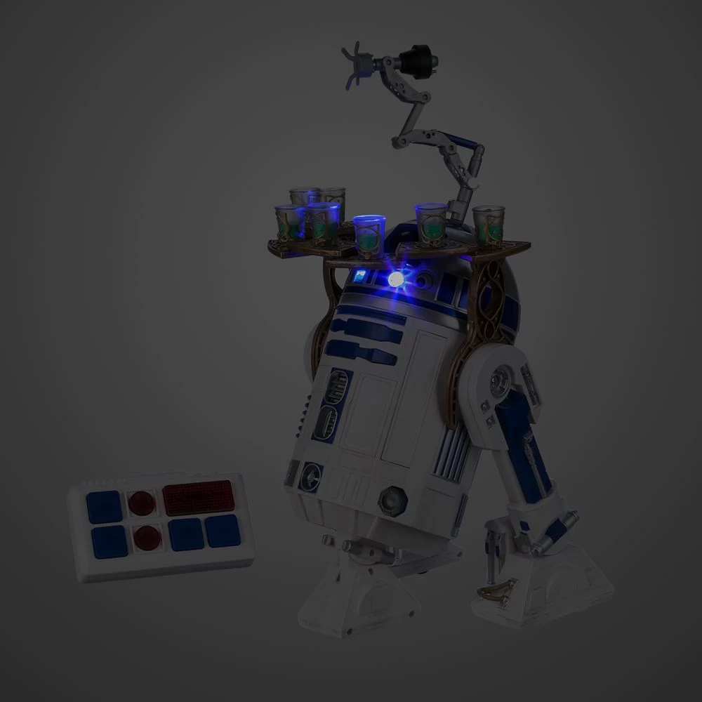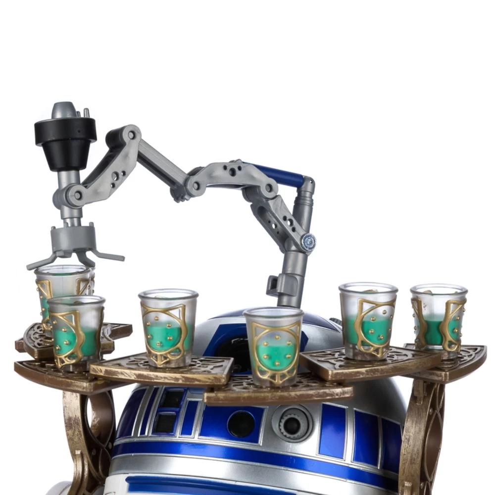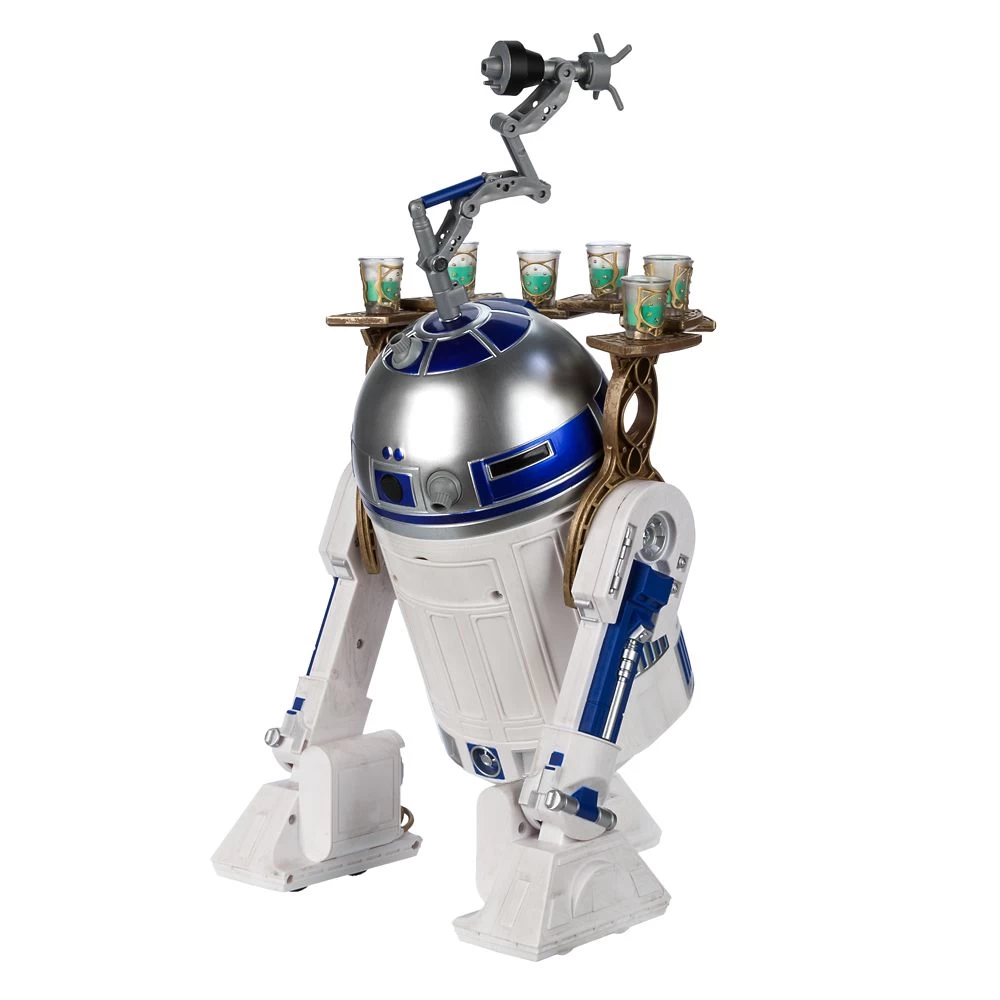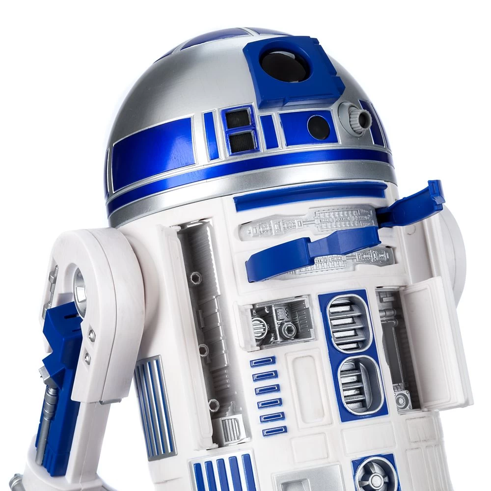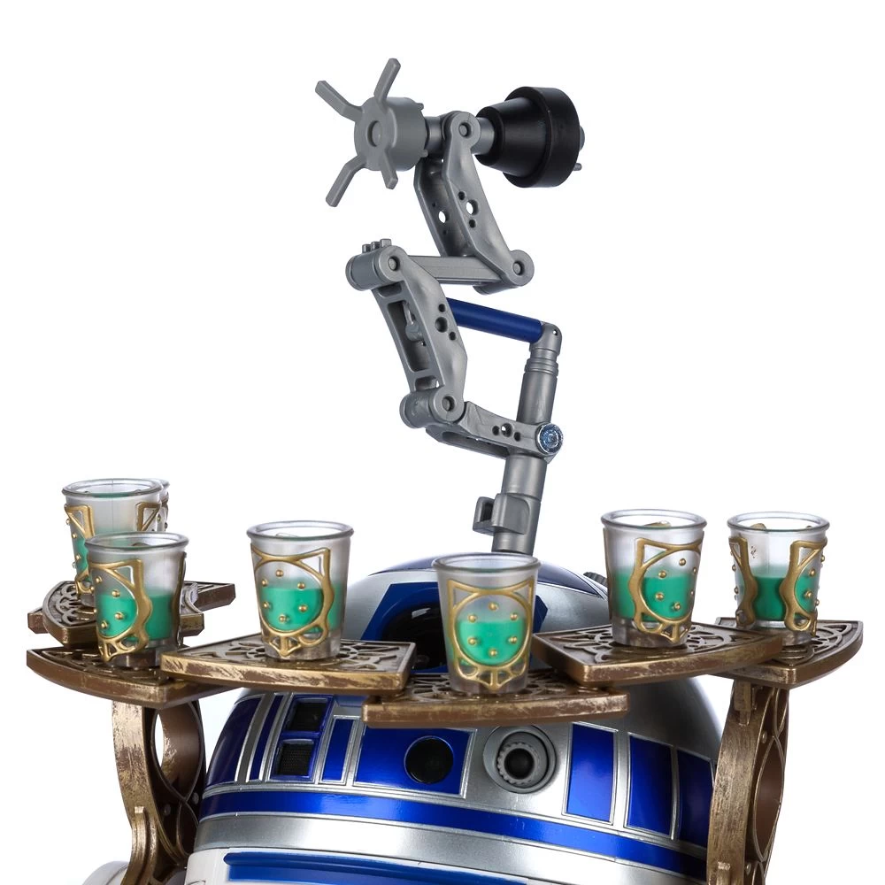 More than just a lovable droid, R2-D2 has served in more than one dangerous Rebel mission. This R2-D2 remote control interactive droid lets you relive the time R2-D2 helped rescue Han Solo while trapped by Jabba the Hutt. Attach the service arm and tray to R2-D2 and use the remote control to help him serve drinks just like he did aboard the sail barge. Inspired by Star Wars: Return of the Jedi, this highly detailed, large scale figure features lights and sound effects, removable door and panels, cups and a personality chip port. (Chips sold separately.)