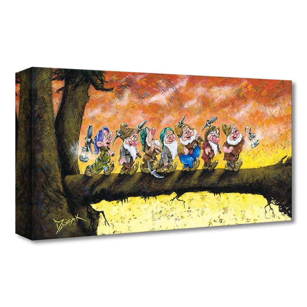 Hi-Ho! Hi-Ho! Add a little classic Disney magic to your décor with this limited edition giclée by Trevor Mezak. Featuring the seven dwarfs headed home after a hard day’s work, ”Back To Home We Go” comes gallery wrapped on canvas.