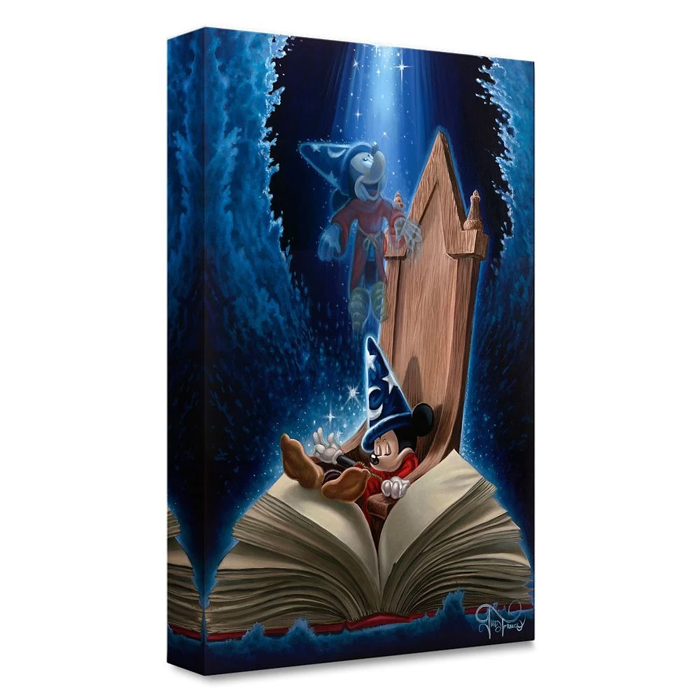 The young apprentice Mickey is ”Dreaming of Sorcery” in this spellbinding work by Jared Franco. Inspired by the memorable segment in Walt Disney’s Fantasia, this limited edition giclée on canvas comes gallery wrapped and includes a certificate of authenticity.