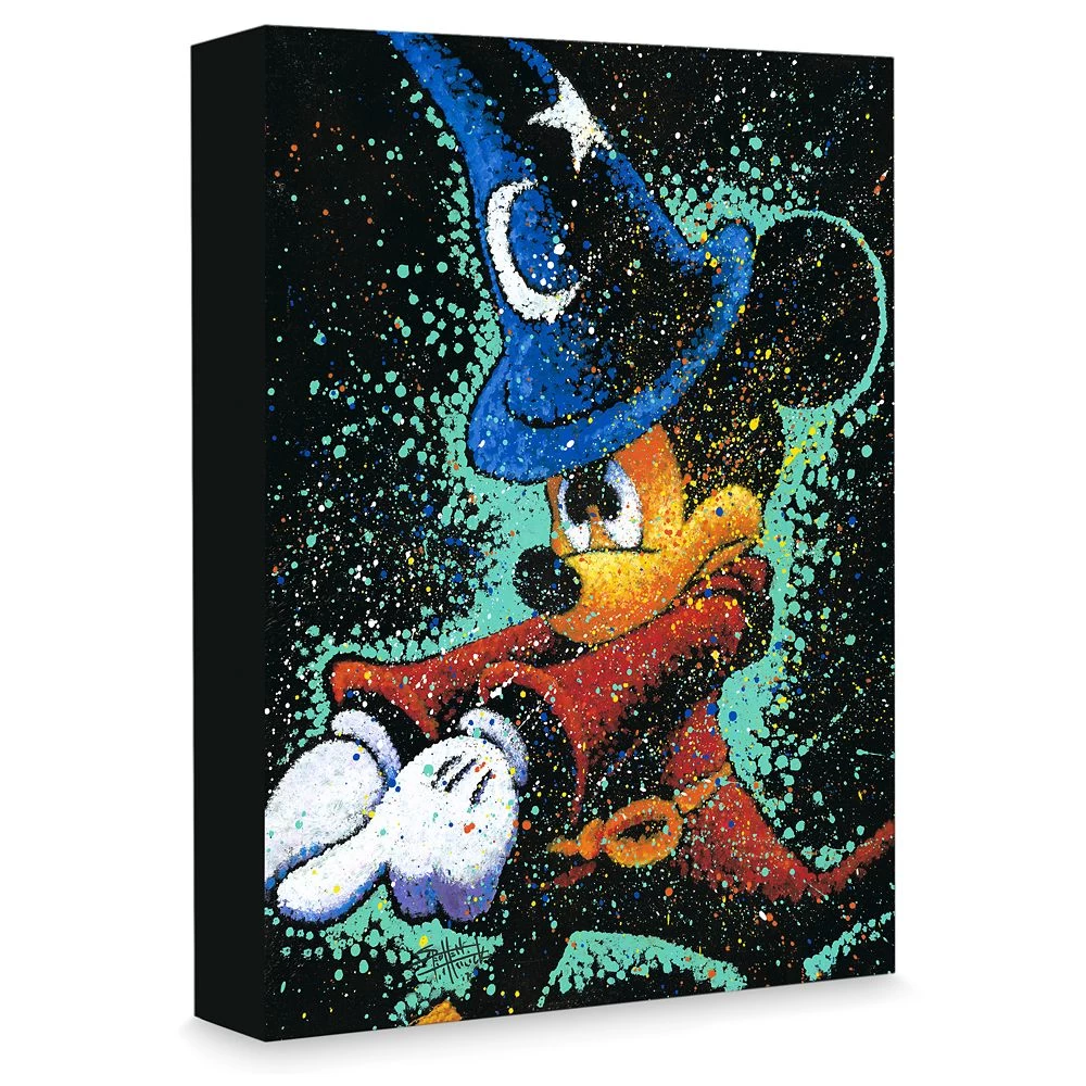 Sorcerer Mickey works his magic with focus and precision on ”Mickey Casts a Spell.” Created by artist Stephen Fishwick, this limited edition gallery wrapped giclée on canvas is filled with vibrant visual texture and striking splatter details.