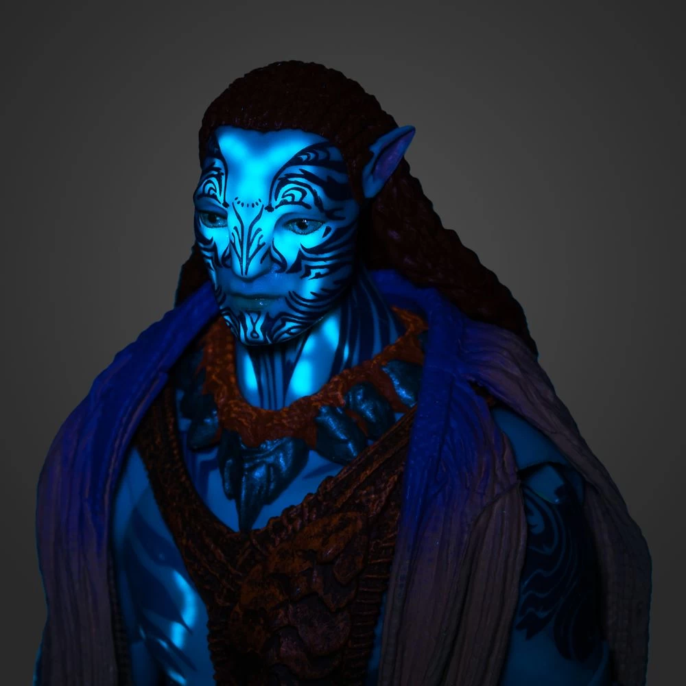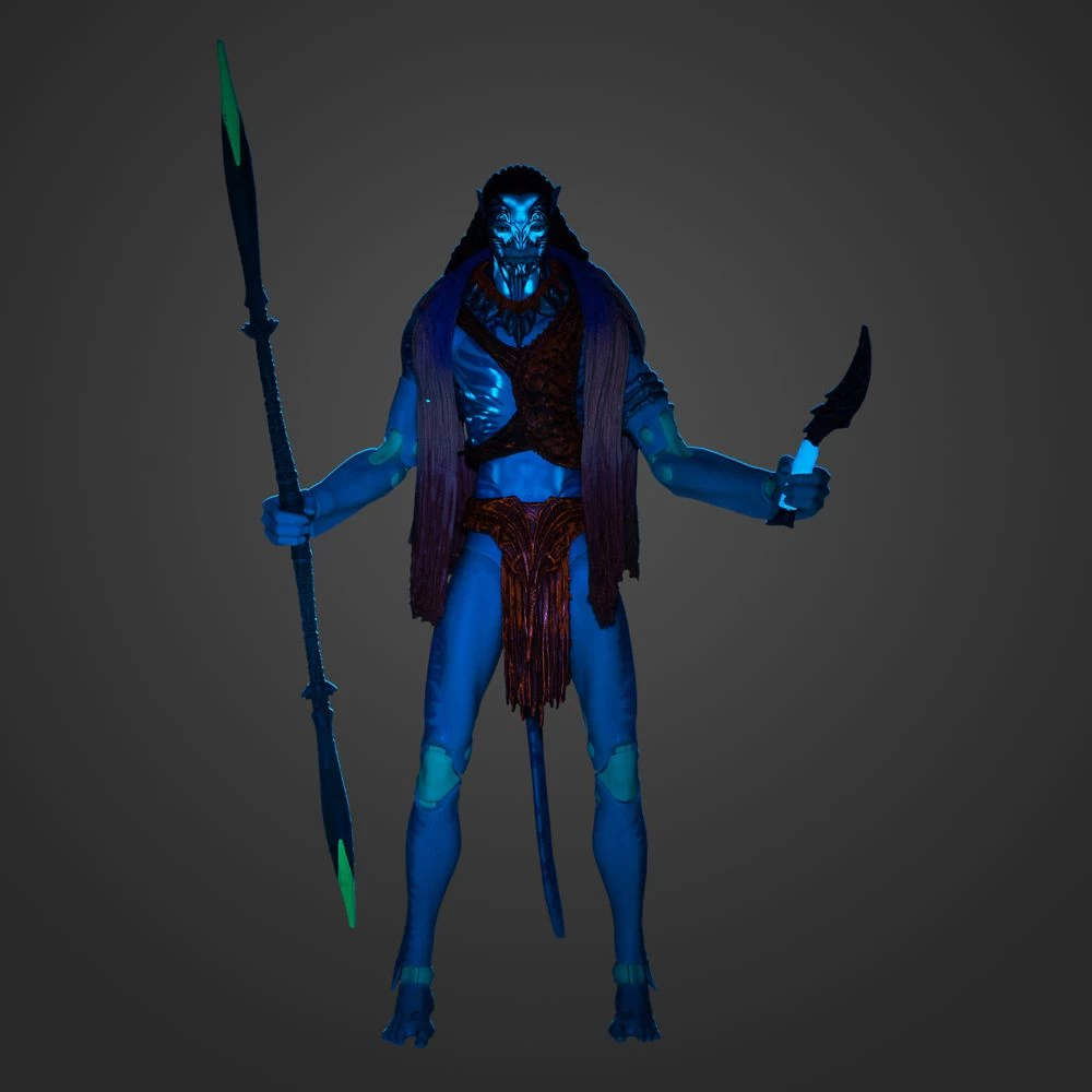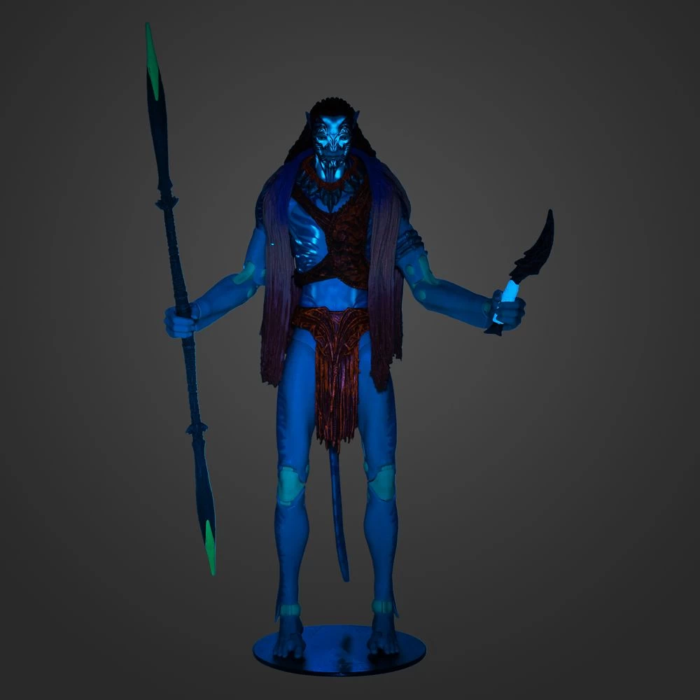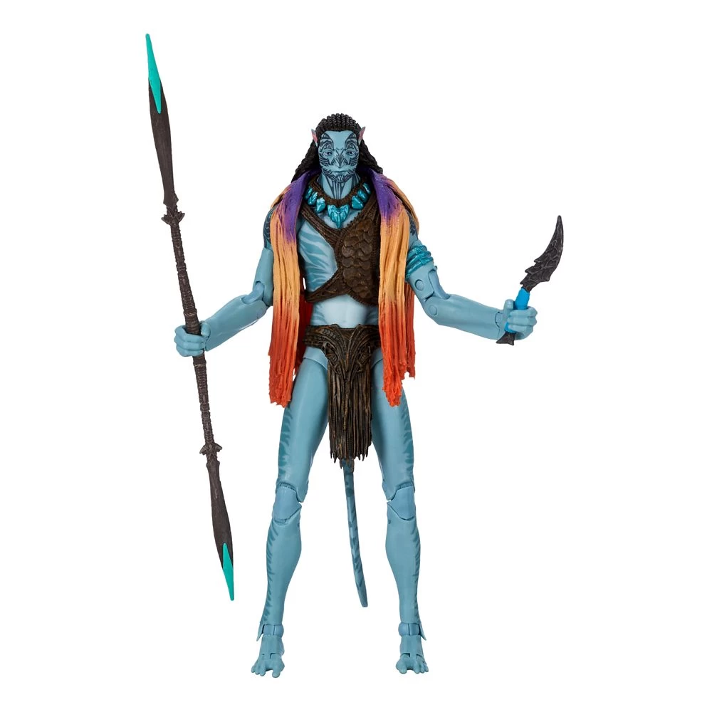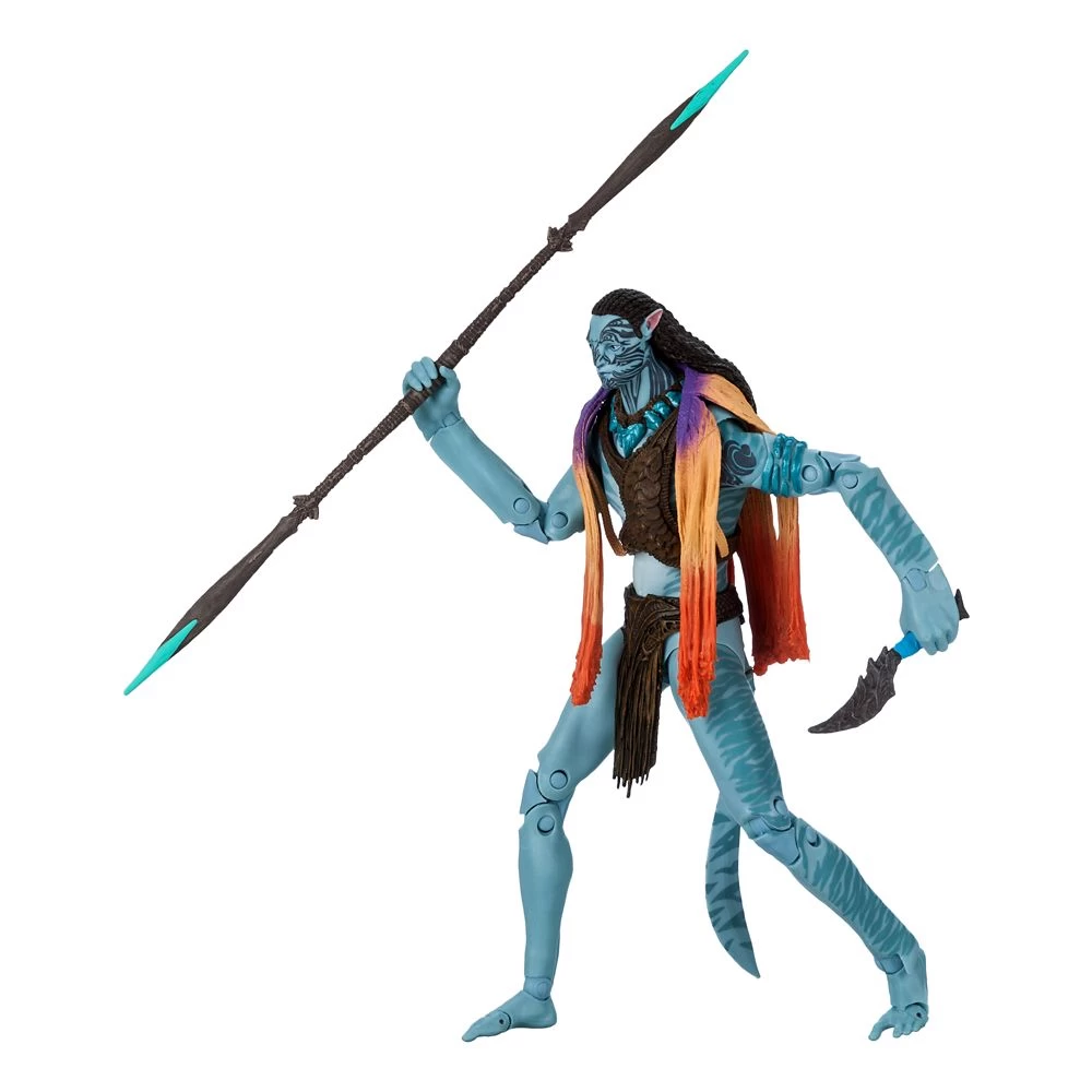 A fierce warrior, proud leader and devoted father, Tonowari is the Olo’eyktan of the Metkayina clan. He is compelled to help the Sully family but his actions will bring great challenges for everyone he loves. Inspired by Avatar: The Way of Water, this highly detailed Tonowari action figure comes with a toy spear and knife. With 22 points of articulation and special blacklight activated bioluminescence, it can be positioned in action stances like riding Tonowari’s prized skimwing (sold separately) or it can be proudly displayed on the collector stand for all to admire.