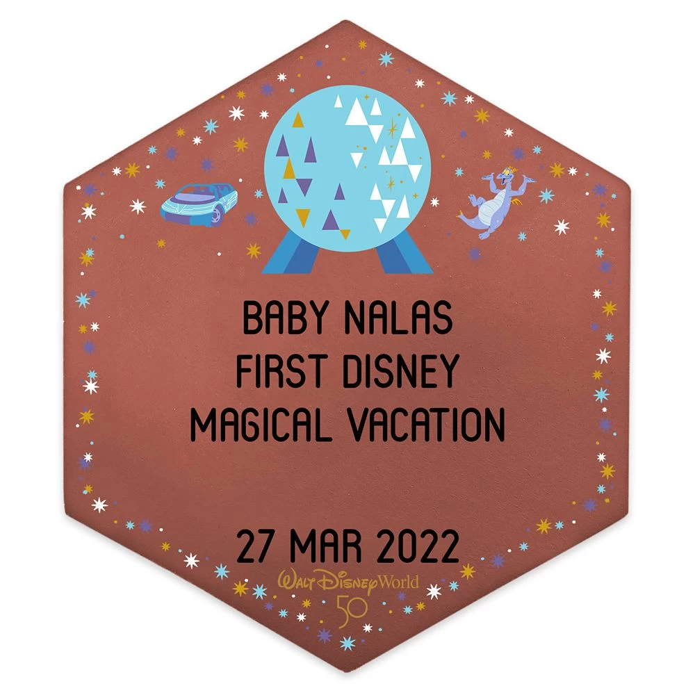 Celebrate the 50th anniversary of Walt Disney World by creating your very own personalized Commemorative Legacy Paver. Inspired by the bricks originally featured at Magic Kingdom Park, this souvenir 6” clay replica* features artwork of Spaceship Earth from Disney’s EPCOT park.