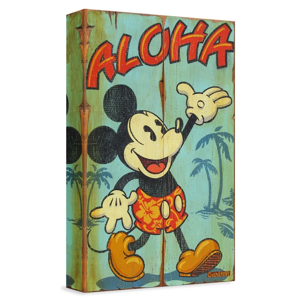 Mickey Mouse is vacation ready with an ”Aloha” greeting on this giclée on canvas by Trevor Carlton. Our limited edition ”Welcome to the Islands” comes gallery wrapped and includes a certificate of authenticity.